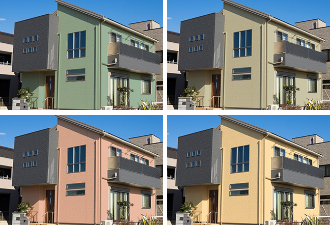 実際の家の写真を使用して色替えのイメージを見ることが出来ます。 自分好みの色、ご近所の家と調和する色、個性的な色など様々なパターンを試してみましょう!