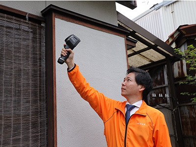 愛知県春日井市の外壁塗装&防水専門店達美装では、赤外線カメラや打診棒、クラックゲージ等の専門器具を使い、外壁のミクロな部分まで診断します。 身体の調子が悪い時にお医者さんに行かれるように、お家も健康診断を行ない、悪い場合は外壁塗装や屋根塗装、外壁材・屋根材の張り替えなど対処する必要があるのです。
