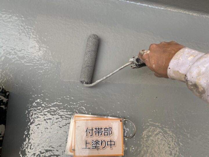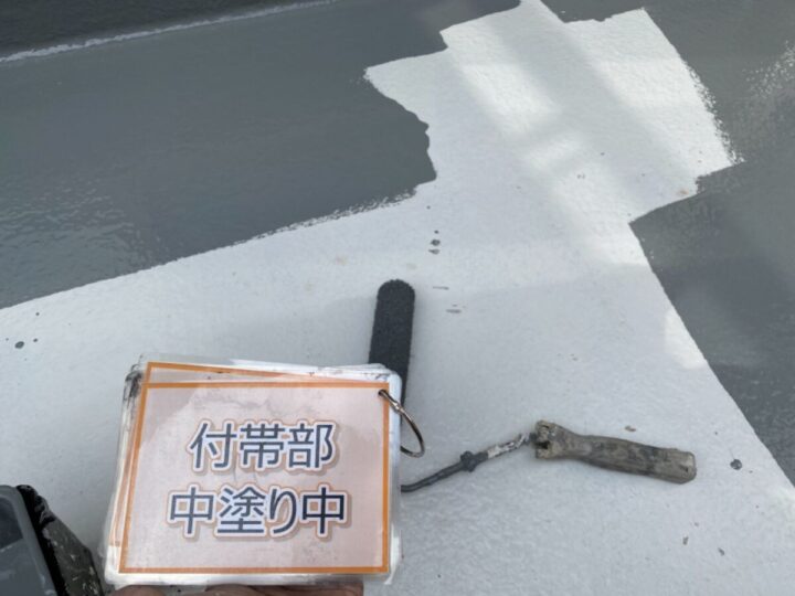 【中塗り】平場・立上り共に平滑に塗装していきます。