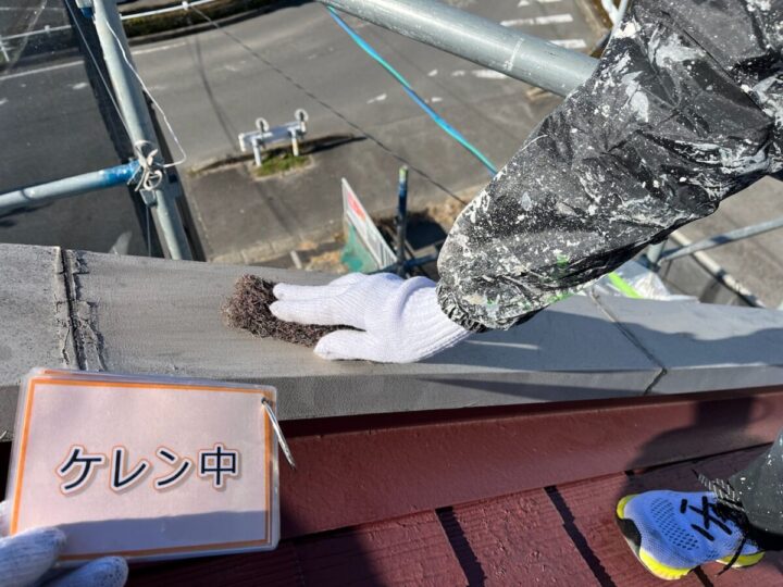 【ケレン】汚れや錆をきれいに落とし、塗料の密着性を上げるための作業をします。