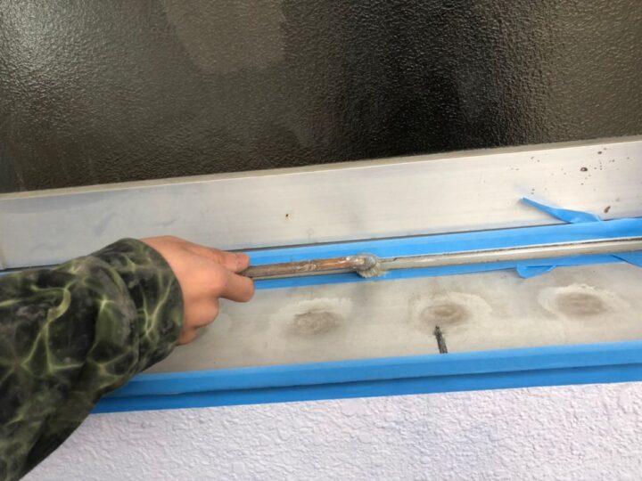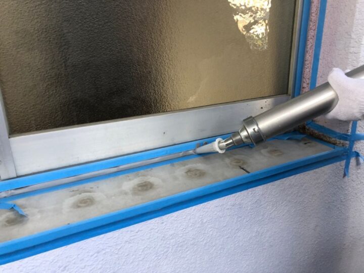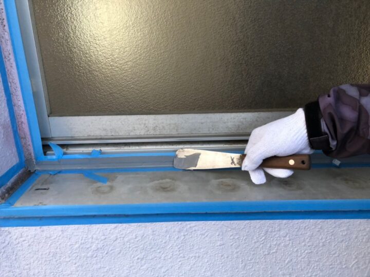 【充填】シーリング材が隅々まで行きわるように丁寧に充填していきます。