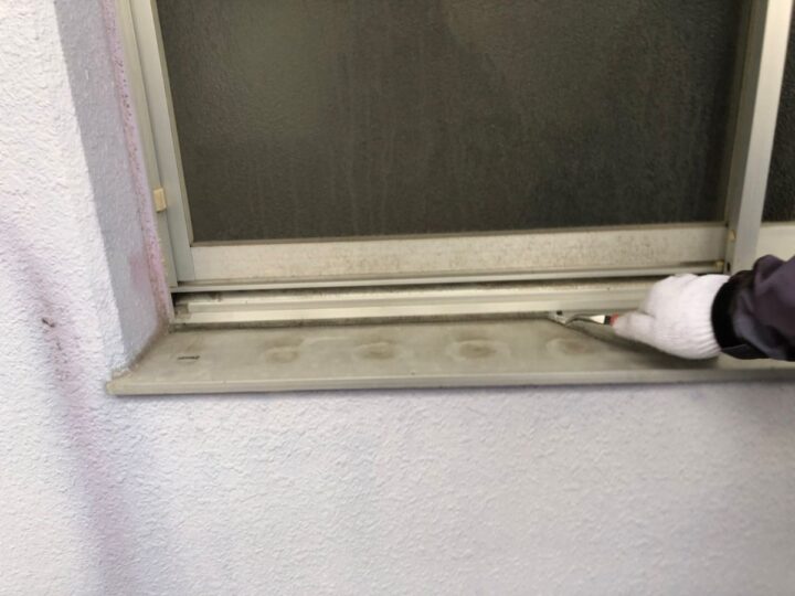 【撤去】古くなったシーリング剤を撤去します。
