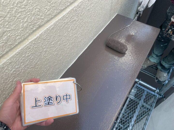 【上塗り】塗料を塗り重ね、色ムラを無くし美しく仕上げます。
