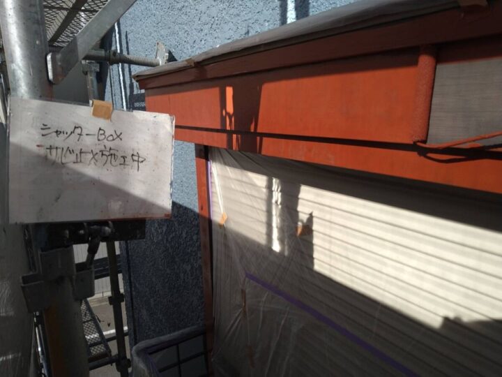 【下塗り】錆び止め塗料を塗布し、鉄部の錆び防止をします。