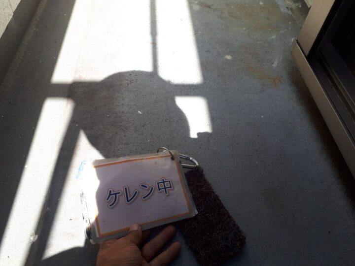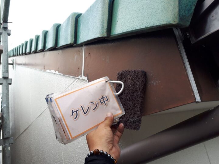 【ケレン】汚れや錆をきれいに落とし、塗料の密着率を上げる作業をします。