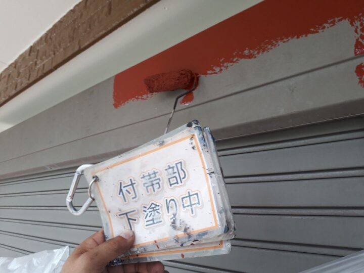 【下塗り】錆び止め塗料を塗布し、鉄部の錆び防止をします。