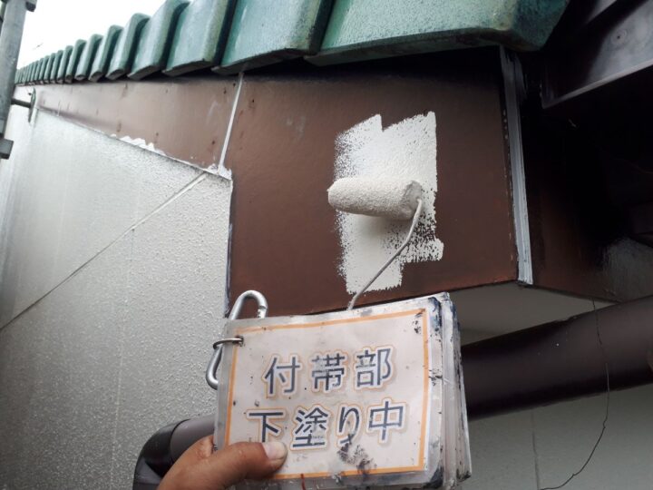 【プライマー塗布】隅の部分から雨漏りしやすいため、丁寧に塗布していきます。