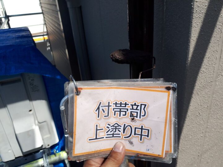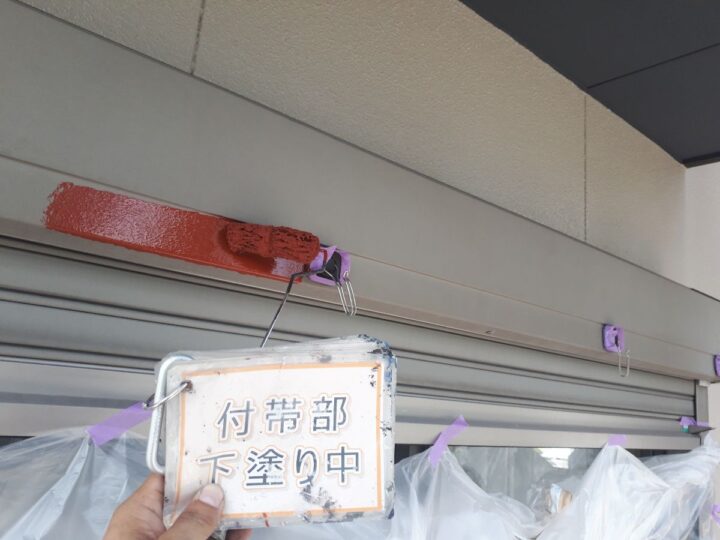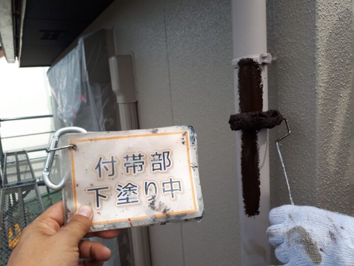 【下塗り】錆び止め塗料を塗布し、鉄部の錆び防止をします。