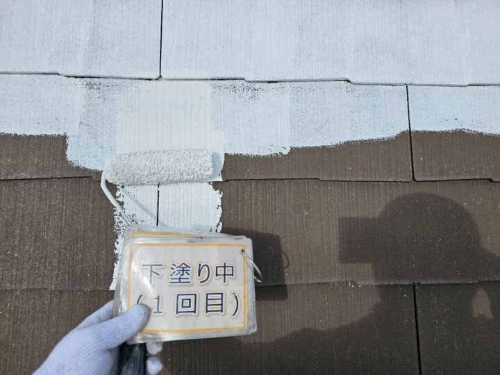 【下塗り】錆び止め塗料を塗布し、錆び防止をします。