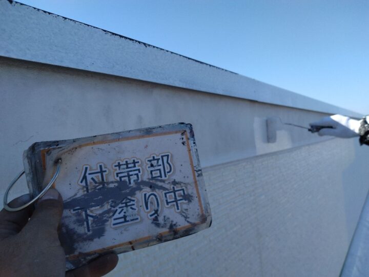 【下塗り】錆び止め塗料を塗布し、鉄部の錆び防止をします。