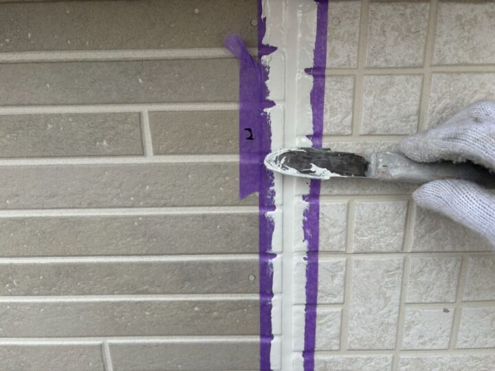 【撤去】古くなったシーリング剤を撤去し、プライマーを塗布していきます。