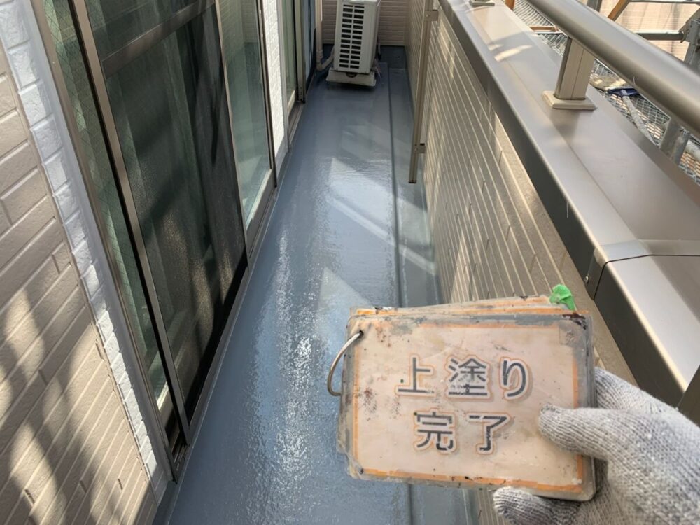 【トップコート】仕上げに保護塗料を塗布し、施工完了です。