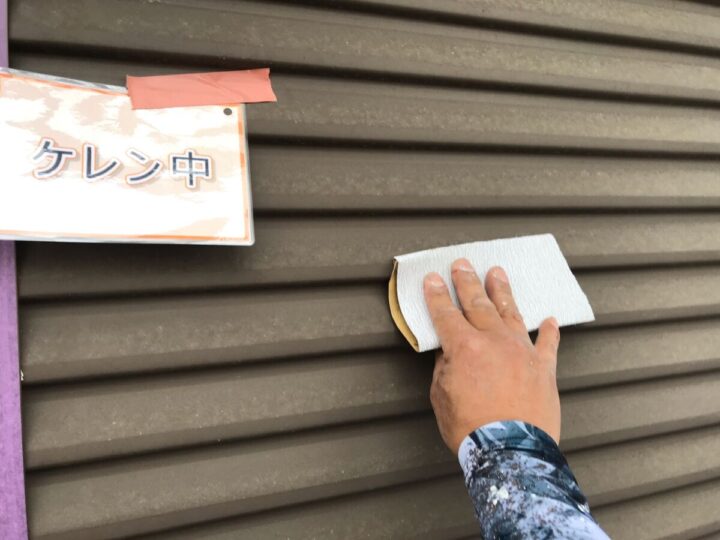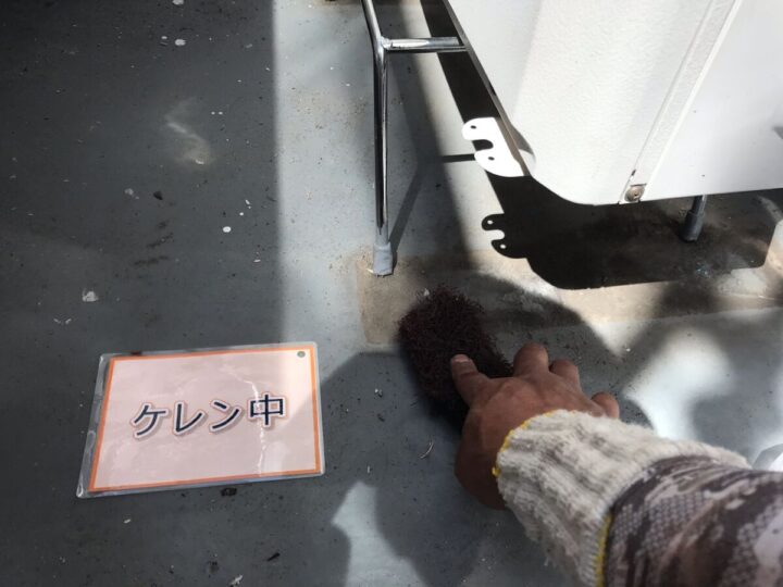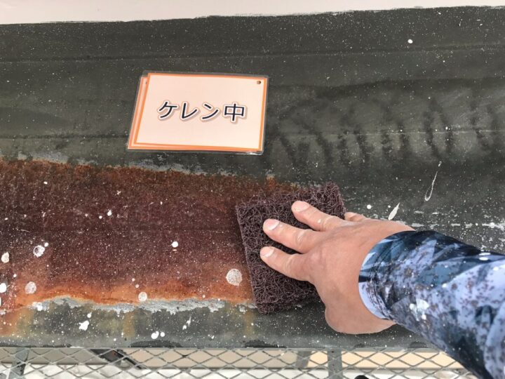 【ケレン】錆や汚れをきれいに落とし、平面を平滑に仕上げ塗料の密着率を上げる作業をします。