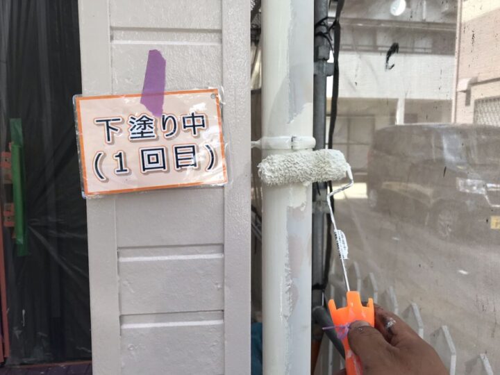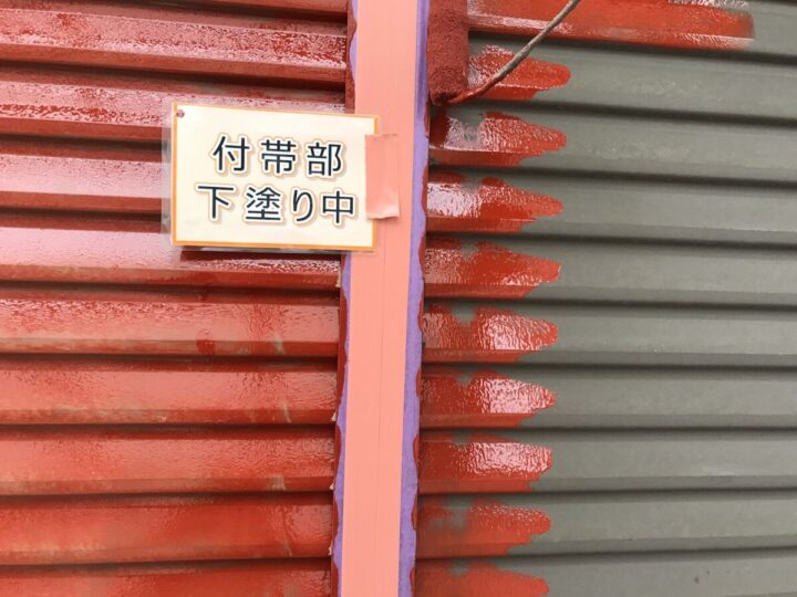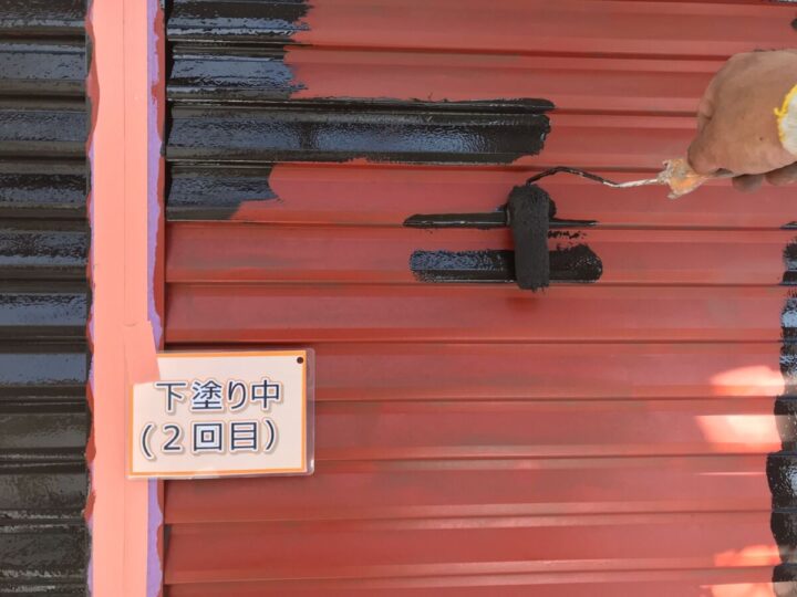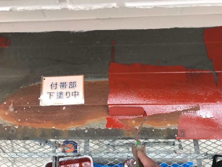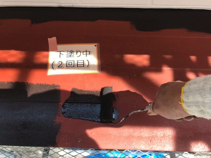 【下塗り】錆び止め塗料を塗布し、鉄部の錆び防止をします。