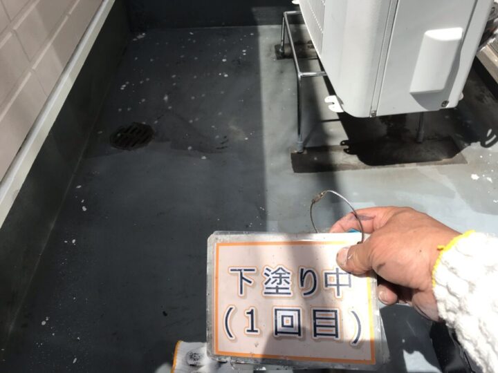 【プライマー塗布】隅の部分から雨漏りしやすいため、隅々まで丁寧に塗布していきます。