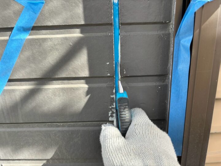 【撤去】古くなったシーリング剤を撤去し、プライマーを塗布していきます。