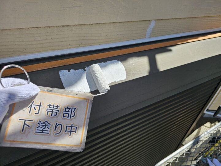 【下塗り】錆び止め塗料を塗布し、鉄部の錆び防止をします。