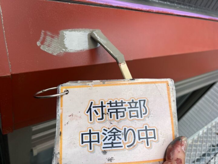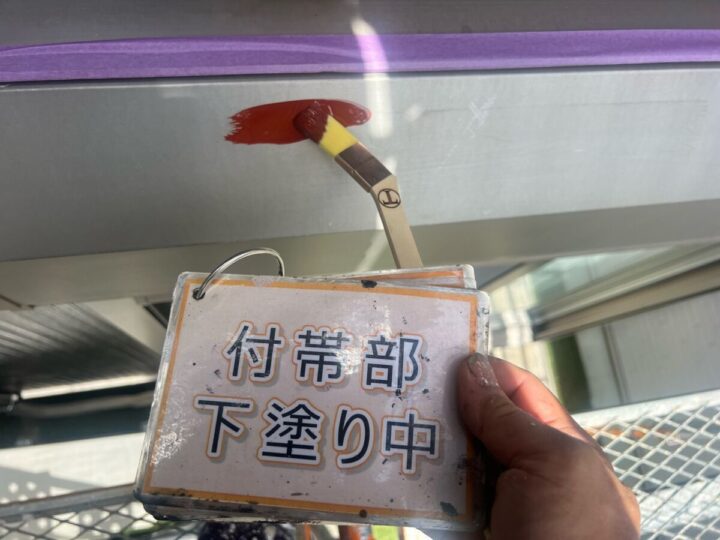 【下塗り】錆び止め塗料を塗布し、鉄部の錆び防止をします。