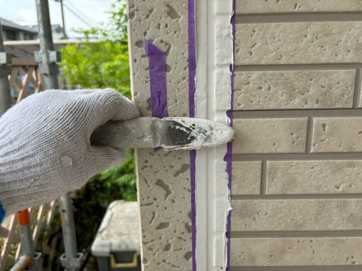 【撤去】経年により劣化したシーリング剤を撤去します。