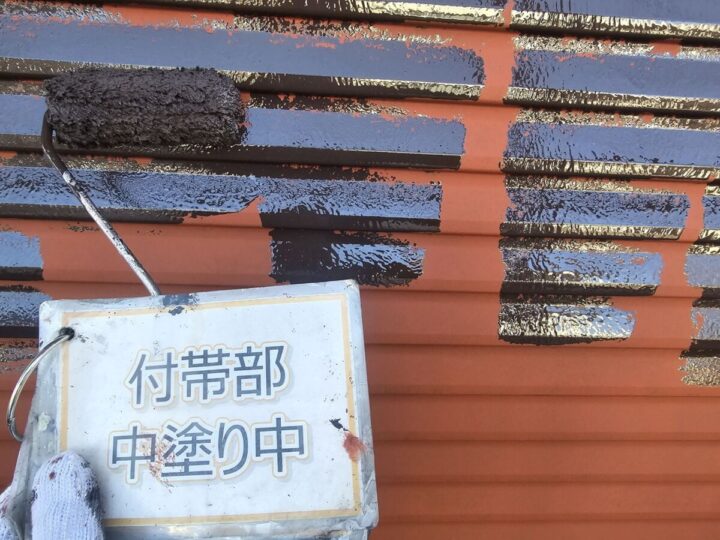 【下塗り】錆び止め塗料を塗布し、鉄部の錆び防止をします。