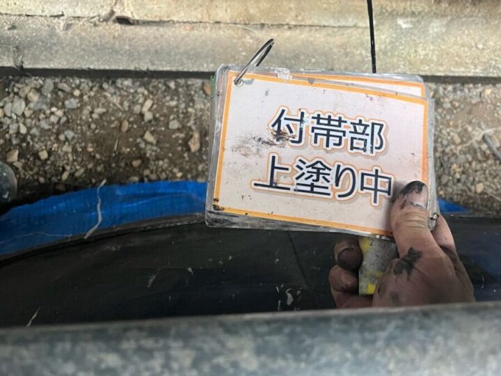 【ケレン】錆や汚れをきれいに落とし、平面を平滑に仕上げ塗料の密着率を上げる作業をします。