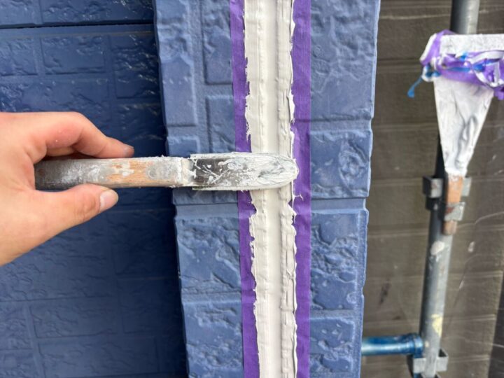 【撤去】経年により劣化したシーリング剤を撤去します。