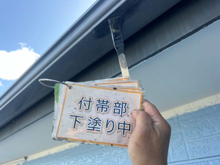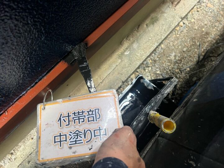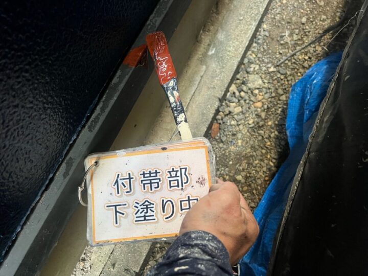 【下塗り】錆び止め塗料を塗布し、鉄部の錆び防止をします。